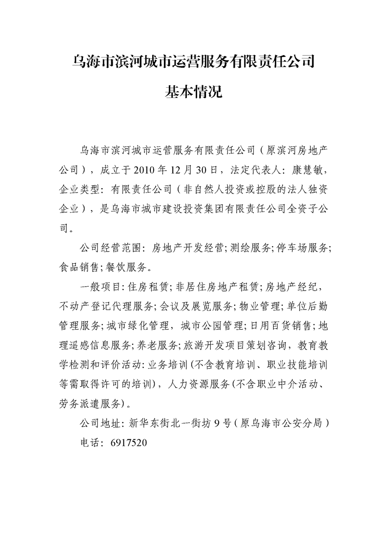 - 2024-07-09烏海市濱河房地產(chǎn)開發(fā)有限責(zé)任公司2024年第二季度信息公開