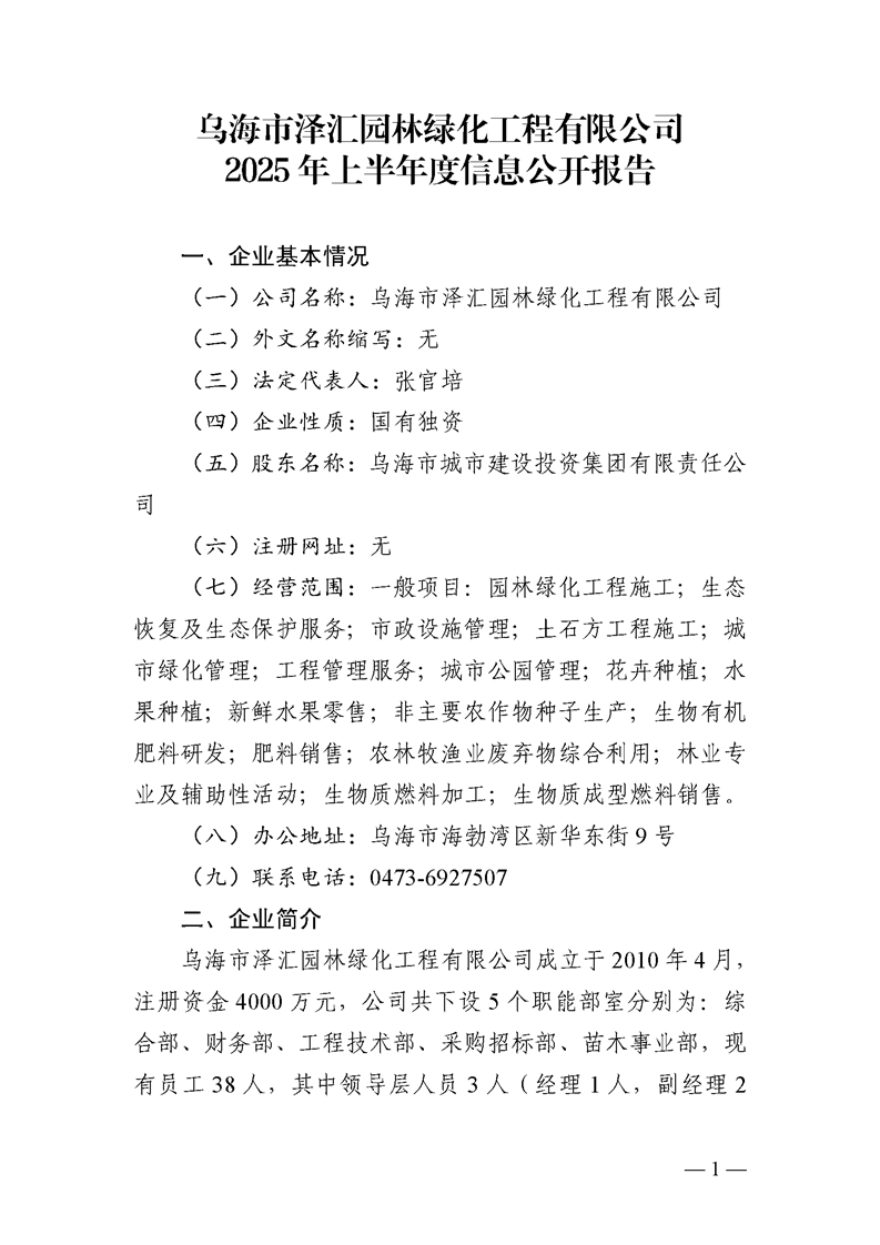 - 2025-03-10烏海市澤匯園林綠化工程有限公司2024年度信息公開報(bào)告
