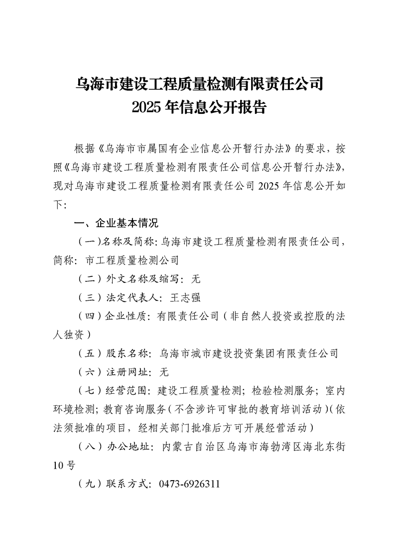 - 2025-03-10烏海市建設(shè)工程質(zhì)量檢測有限責(zé)任公司2024年度信息公開報告